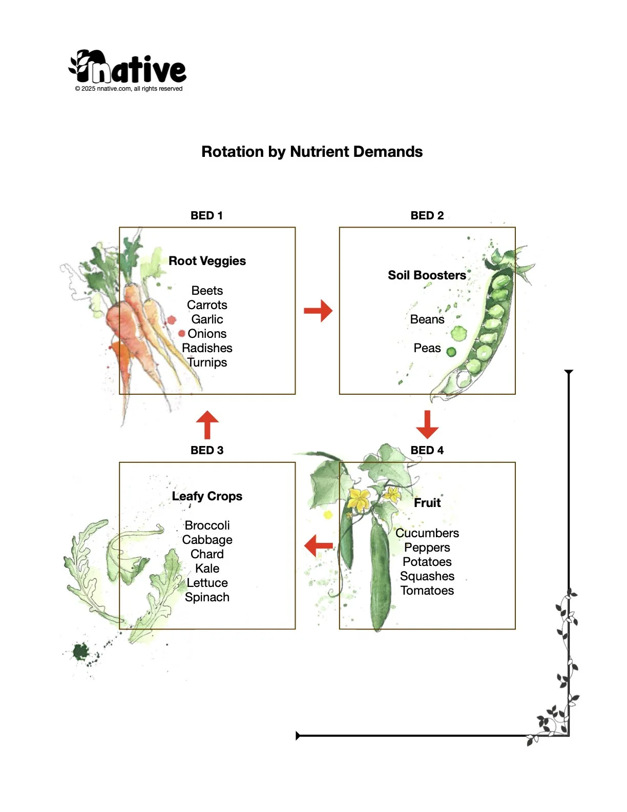 This gardening system is both user-friendly for beginners and highly effective for small to medium-sized gardens. It is based on the principle that different crops have unique nutrient needs, and these needs can be strategically managed through thoughtful crop rotation. By aligning crop placement with the natural cycles of nutrient uptake and replenishment, this system ensures optimal soil health and higher yields over time.