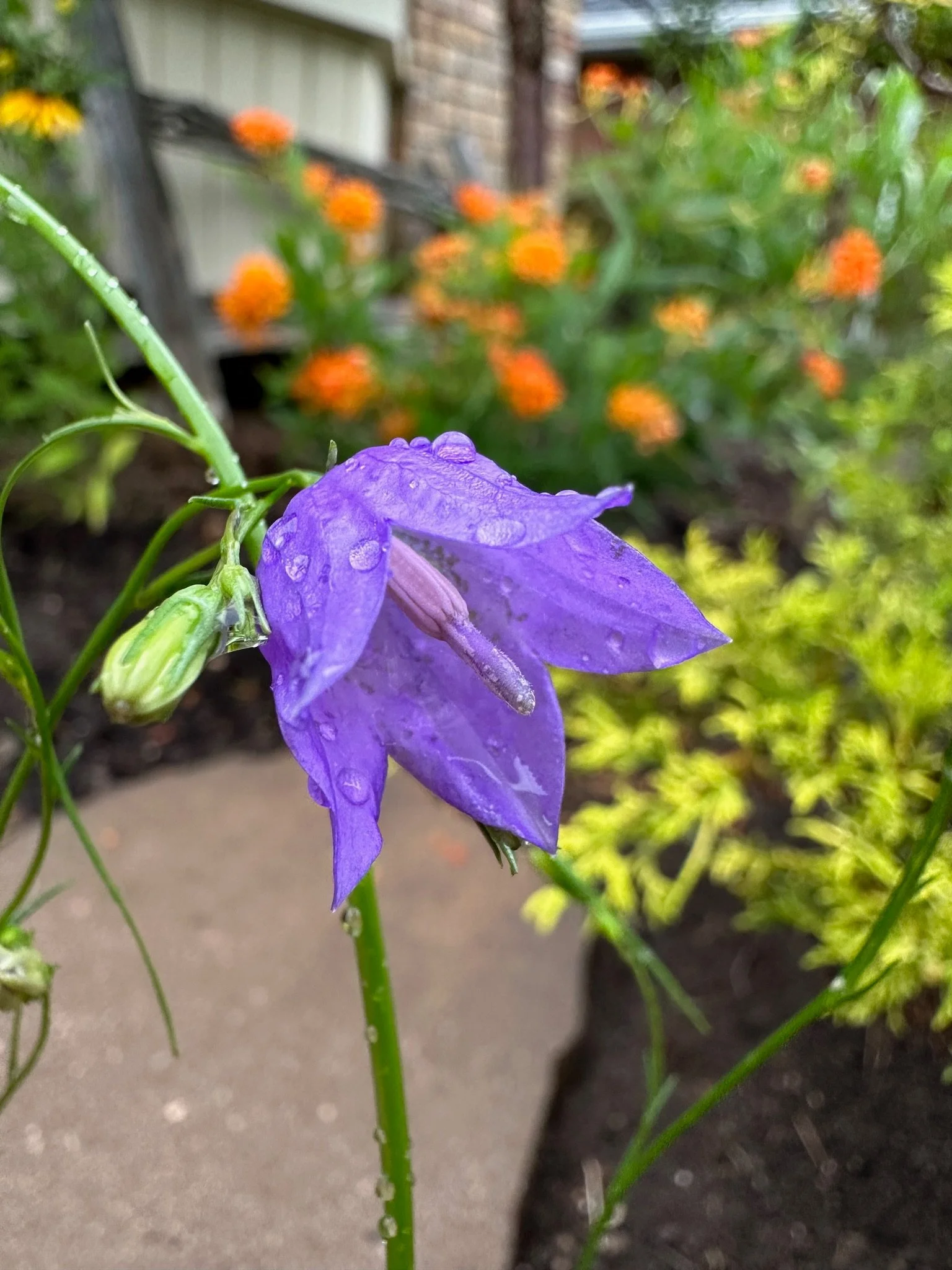 Hi there! I’m the American Harebell (Campanula rotundifolia), a charming native known for my bell-shaped purple flowers. You might recognize me as the well-behaved cousin of the Creeping Bellflower, who’s a bit of a rebel in our family and notoriously untamed. Unlike my adventurous relatives, I’m not invasive in North America—I’ve grown up here and fit right in anywhere because I am not too picky.