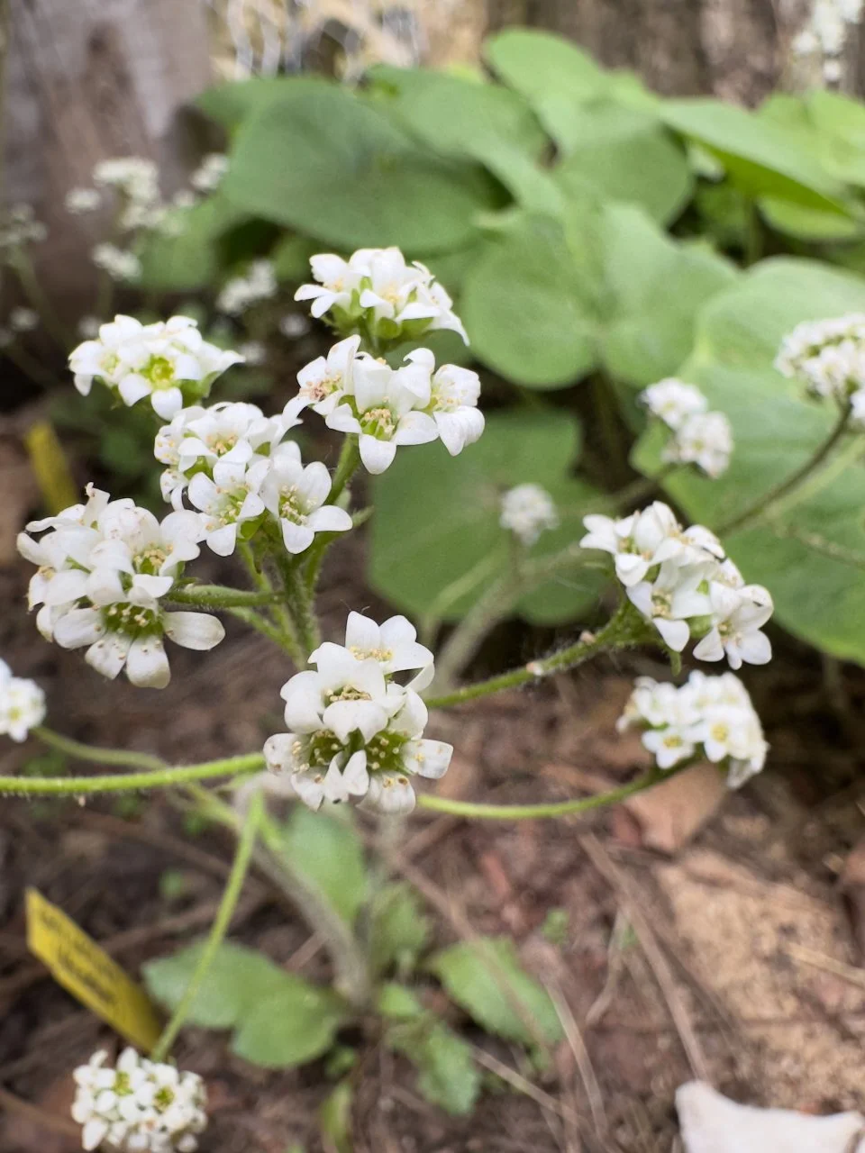 I am not just a flower, but a symbol of endurance and quiet elegance. My fragrant white blossoms rise on sticky, hairy stems, reaching heights of up to twelve inches, a modest display of resilience. When my time to seed comes, my green to purple capsules split open, sending tiny seeds into the world, ready to continue my legacy.