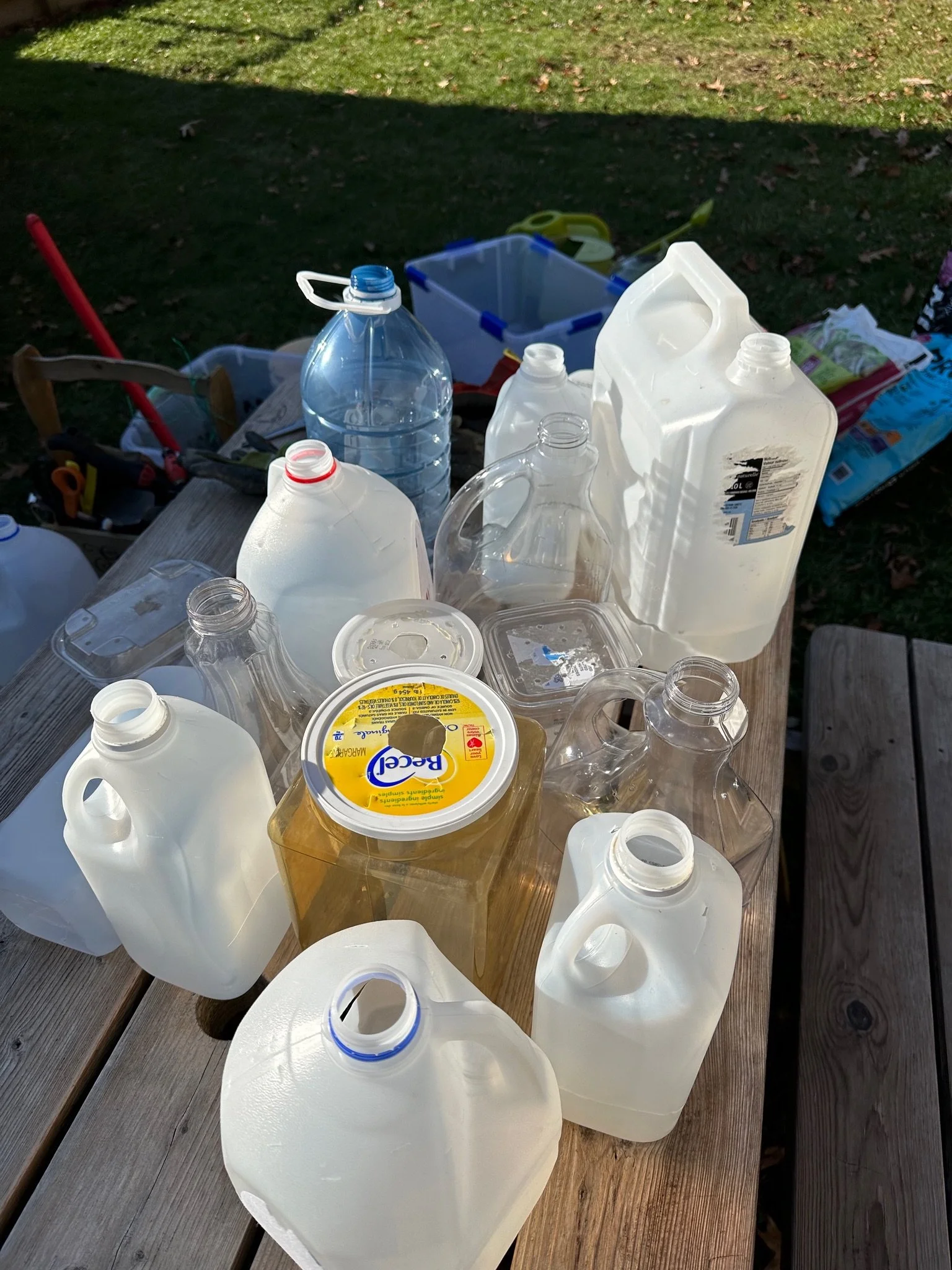 Juice Jugs: Since we don’t usually purchase milk in jugs, our next best option is to use juice jugs. They should be at least 1 Litre or more in size. As long as the plastic is clear or slightly opaque to let enough light in.