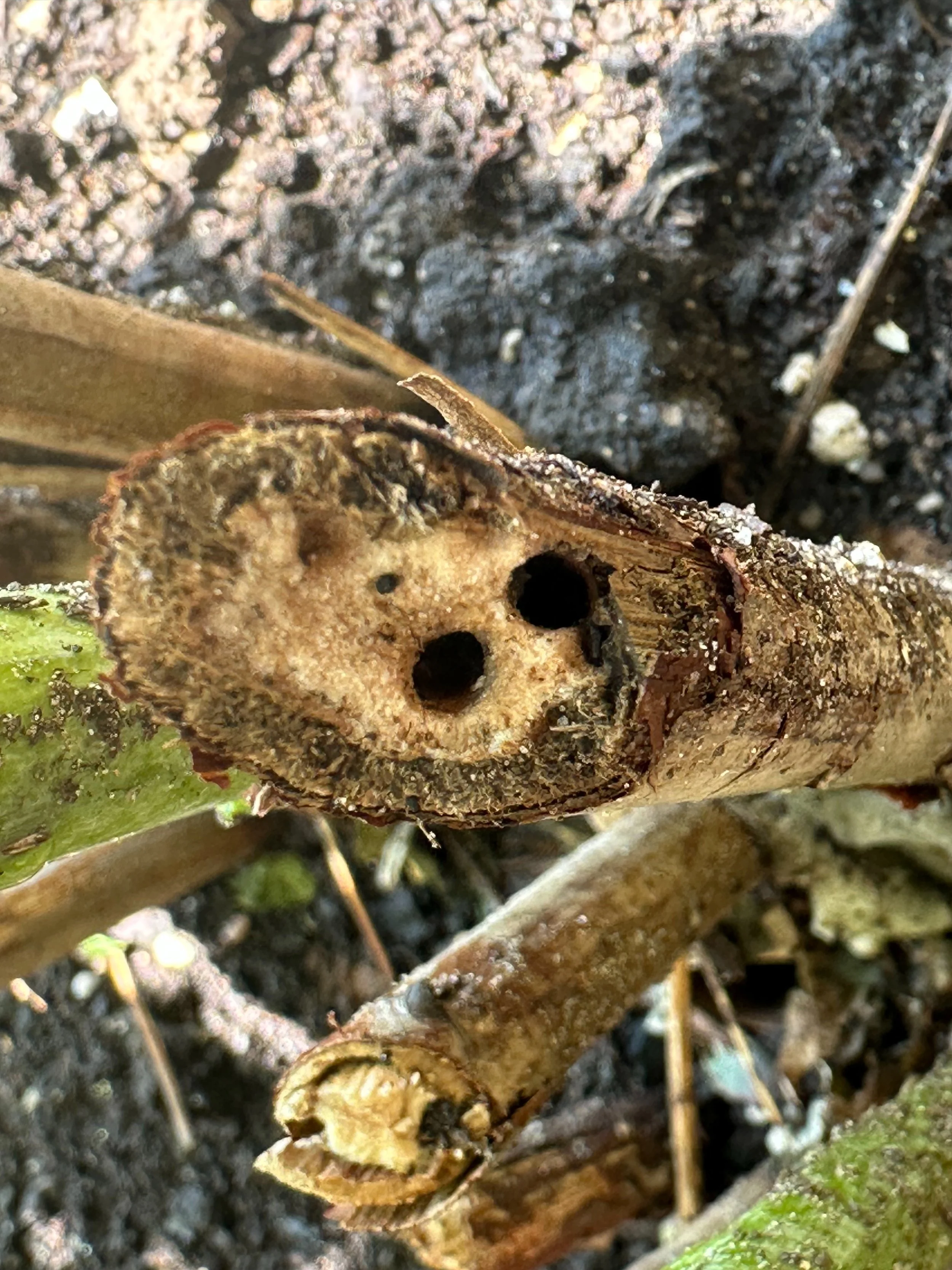 The Small Carpenter Bee is known for nesting in soft, pithy stems, such as the cut ends of old raspberry canes. This means that raspberries not only provide them with food but also offer an essential resource for constructing their nests. When pruning raspberries, be sure to leave enough cane to support their habitat. To further encourage nesting, consider leaving the stems of other hollow-stemmed plants, like elderberries or sumac, over the winter.