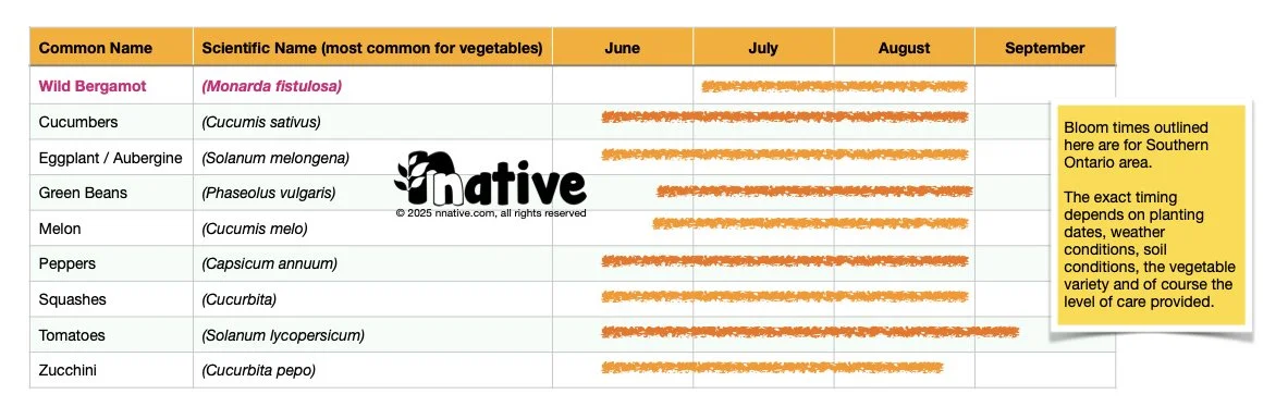 Taking a closer look at the pollinators Wild Bergamot attracts reveals its true potential as a companion plant. Medium to large bees, such as sweat bees, longhorn bees, bumblebees, hover flies, and furrow bees, are all drawn to its blooms. These industrious pollinators not only visit the Bergamot but also efficiently pollinate nearby vegetables, including tomatoes, peppers, eggplant, green beans, cucumbers, squashes, zucchini, and melons.