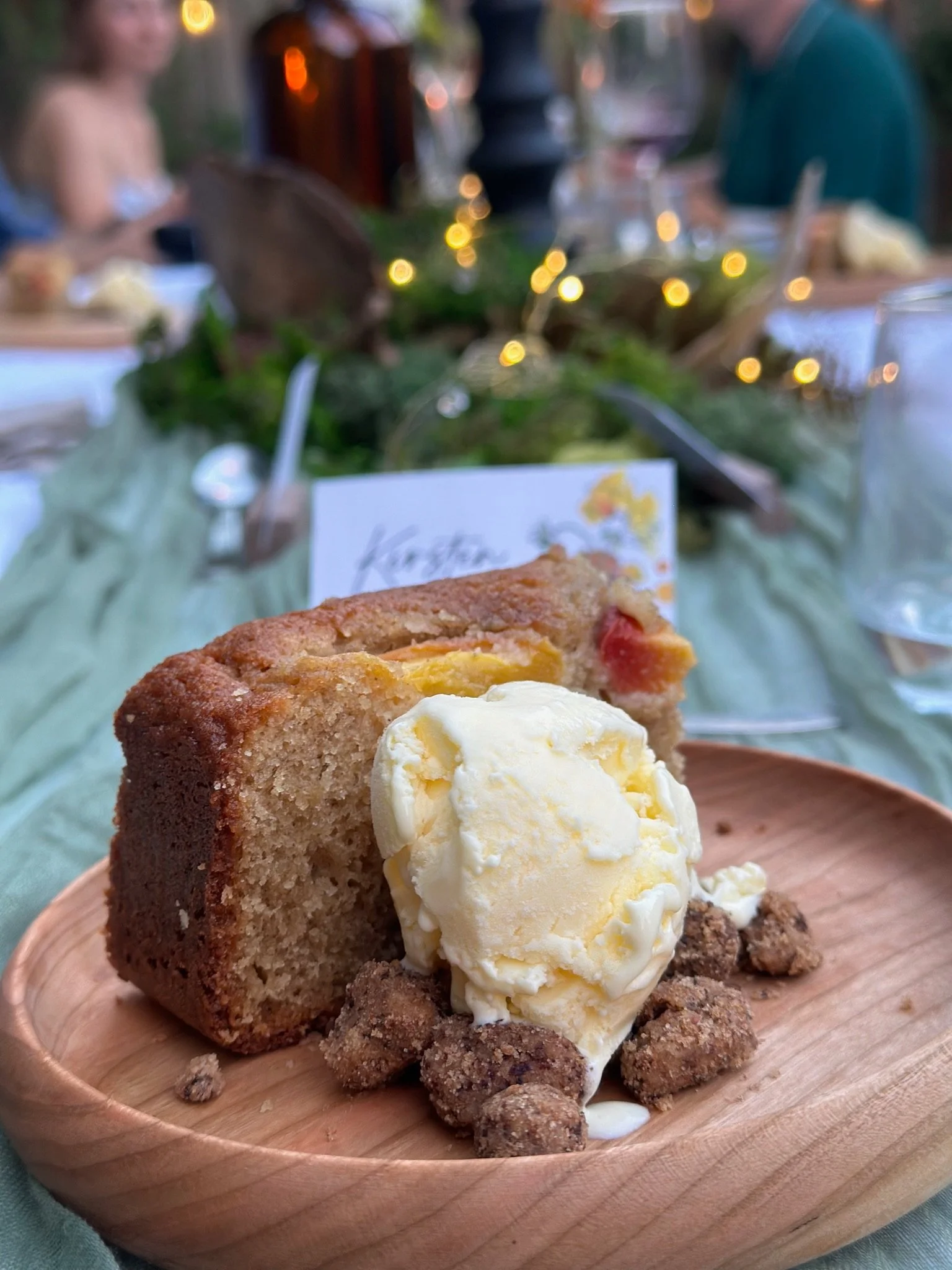 Take, for example, this mouthwatering wild ginger ice cream, perfectly paired with peach and almond cake, all nestled atop a staghorn sumac crumble.