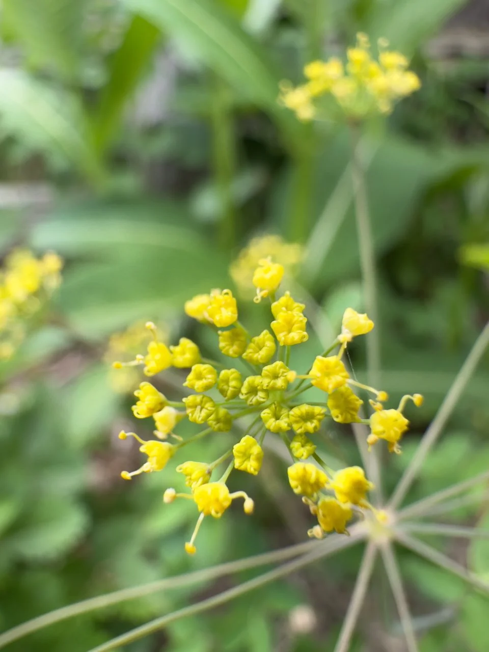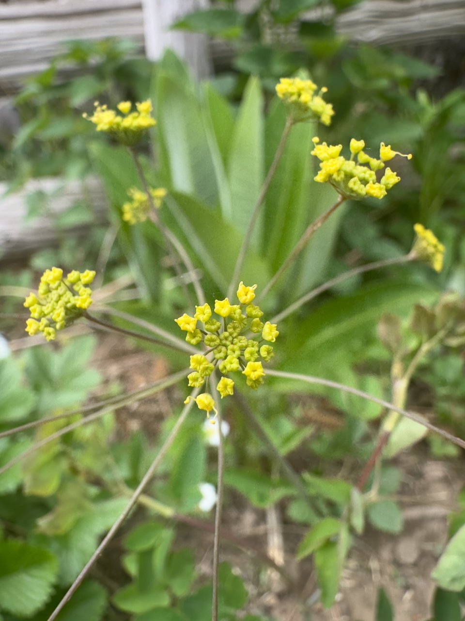 I might not be the flashiest plant in the garden, but give me a moment and I’ll earn my place. I’m Yellow Pimpernel, or Taenidia integerrima if you prefer my full name. I’m part of the carrot family, Apiaceae, though I’m not here to be eaten. Still, crush one of my delicate, divided leaves and you might catch a hint of celery. It’s my own little signature.