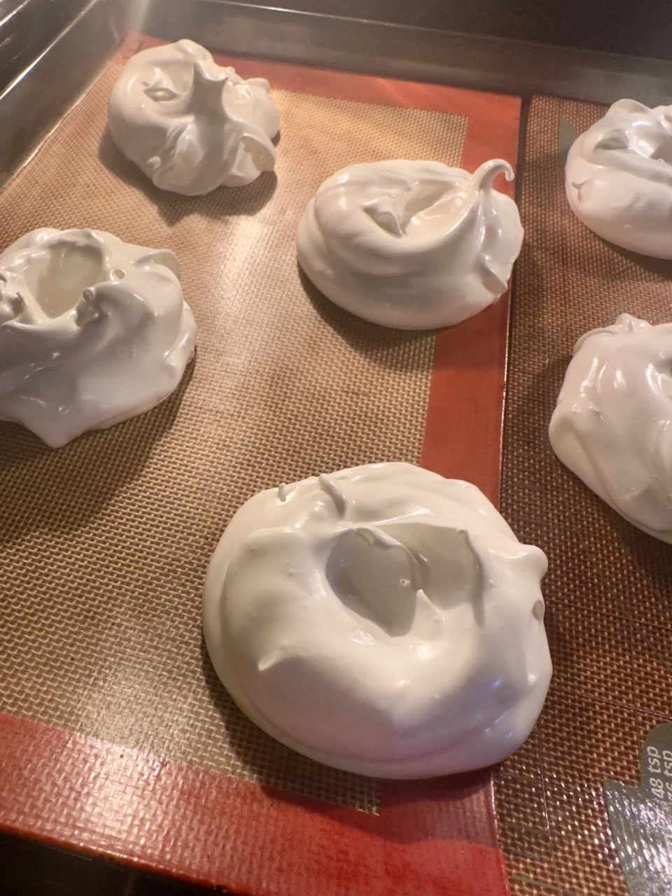 Spoon 3 heaped tablespoons of meringue onto tray per portion