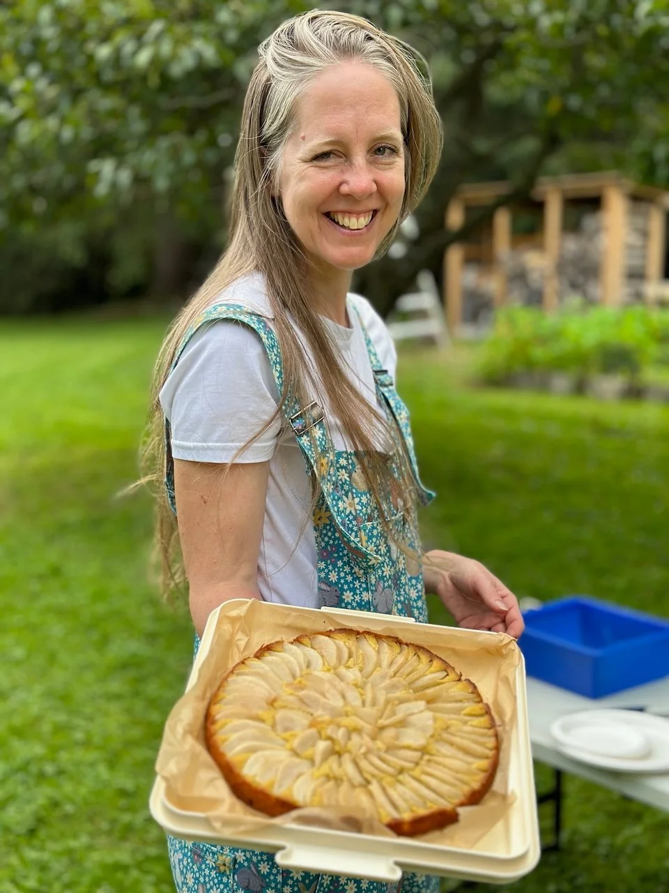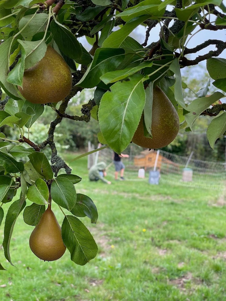 Arrange pear halves or quarters cut-side down in a circle, with narrow ends pointing inward.