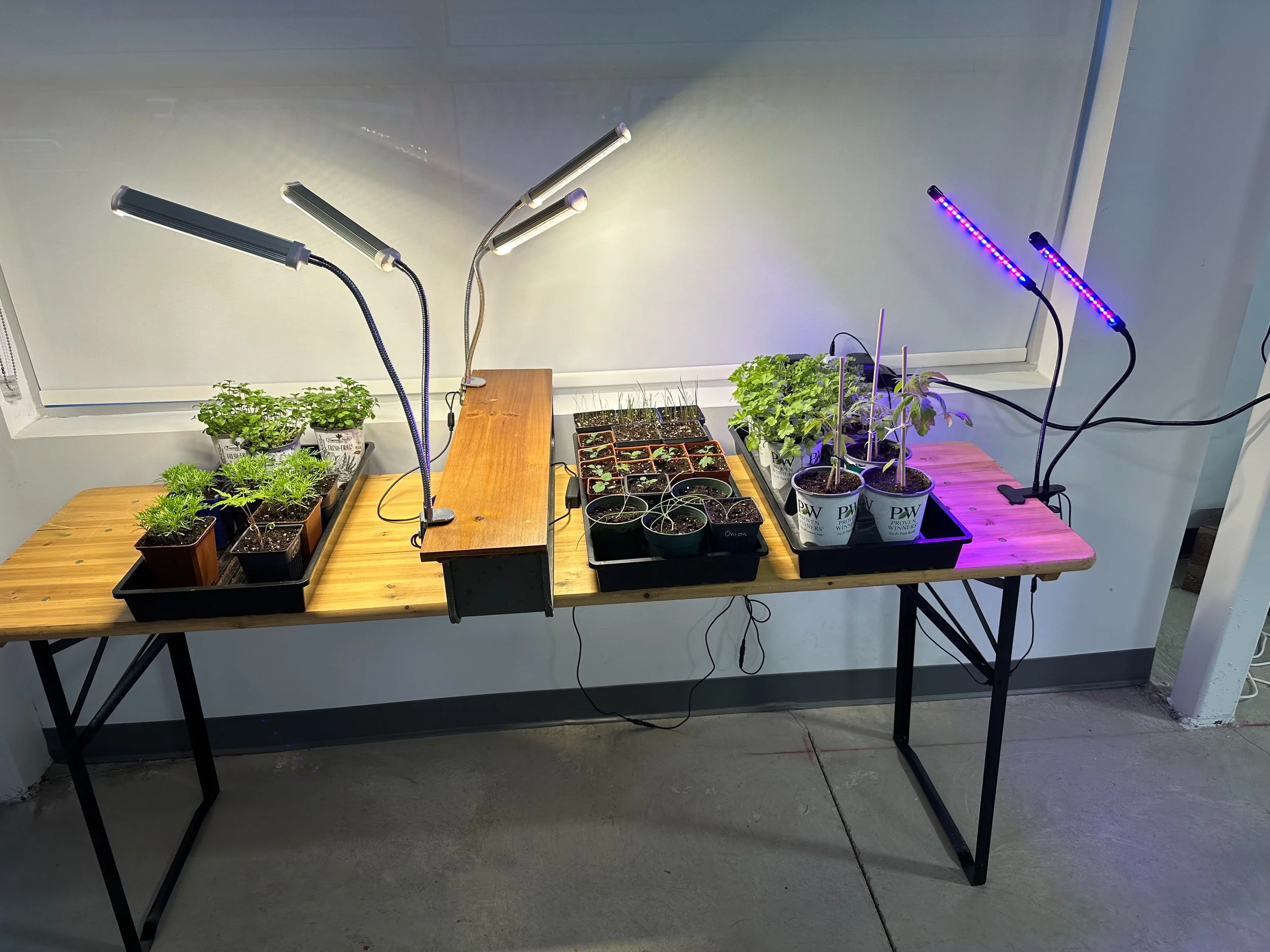Expanding Your Grow Space: If you're planning to grow more plants, take your available space into account and consider investing in overhanging lights. We have lights suspended by strings, which can be moved up and down depending on the plant's growth. Another great option is an adjustable shelf system, allowing you to lower the shelf distance to the light as the plants grow.